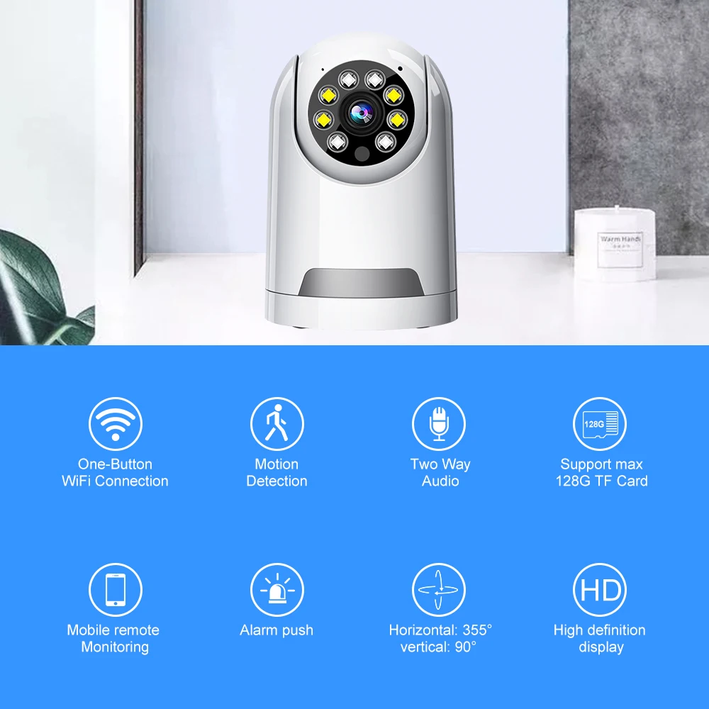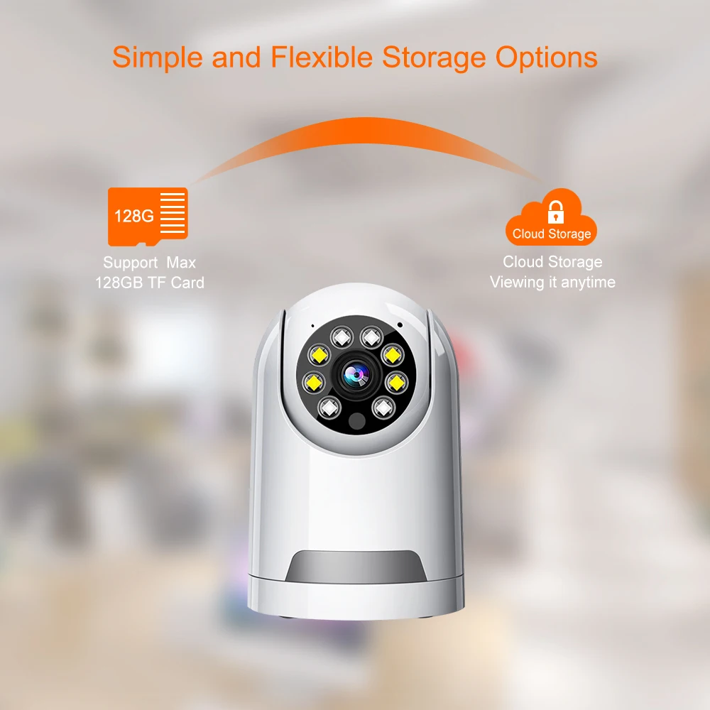 Support 128GB TF Card and cloud storage monitoring data is sent to the cloud.