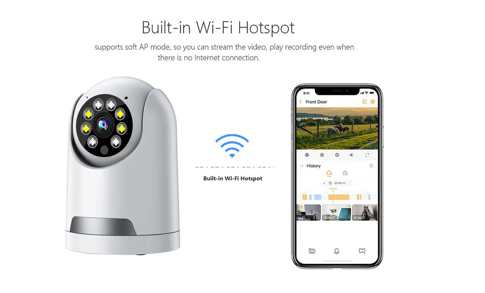 Supports Soft AP mode, you can stream the video and play recordings without the Internet.